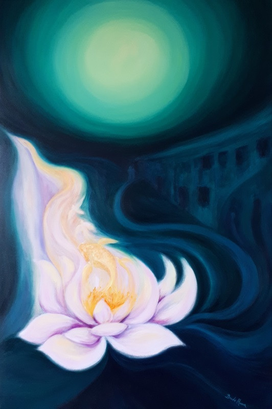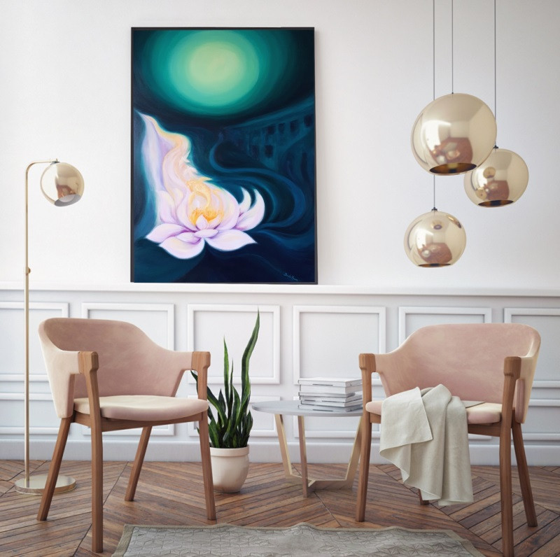 The dynamic colours, soft lines and constant sense of light in her work brings the canvas to life with a vibrancy that speaks to us on a deep level.