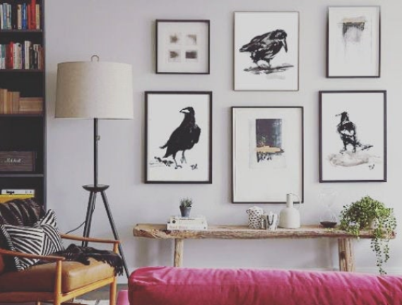 The paintings are a spontaneous response to my observations I often paint with ink and found feathers, sticks or other natural materials which lend themselves to fun mark making and gestural marks.